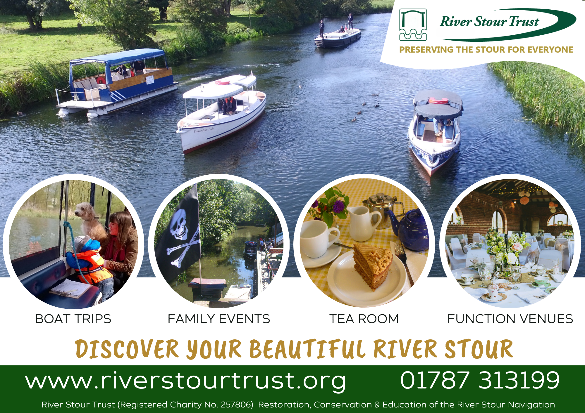 The Granary is a red brick Georgian building that was built in 1807 for the River Stour Navigation Company. This attractive, Grade II listed building was restored by the River Stour Trust in 1989 and is our registered office. Our administrative office is based further along the river at Great Cornard. From Easter until the end of October, the venue is home to our Sudbury Boat Trips and Tea Room.