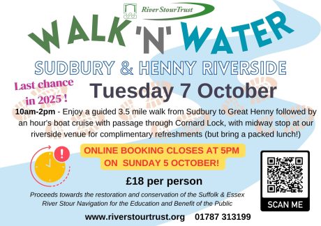 Our popular Walk ‘n’ Water experiences – a combination of walking by the river and boating on the river. All proceeds to the restoration and conservation of the River Stour Navigation for the benefit and education of the public.